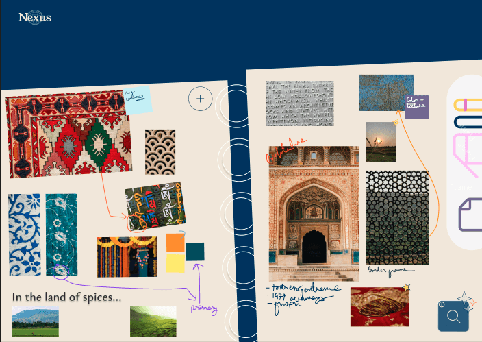 Save inspirations, sketches, and artifacts in one evolving space: a digital scrapbook that helps you ideate, visualize connections, and build projects rooted in meaning.