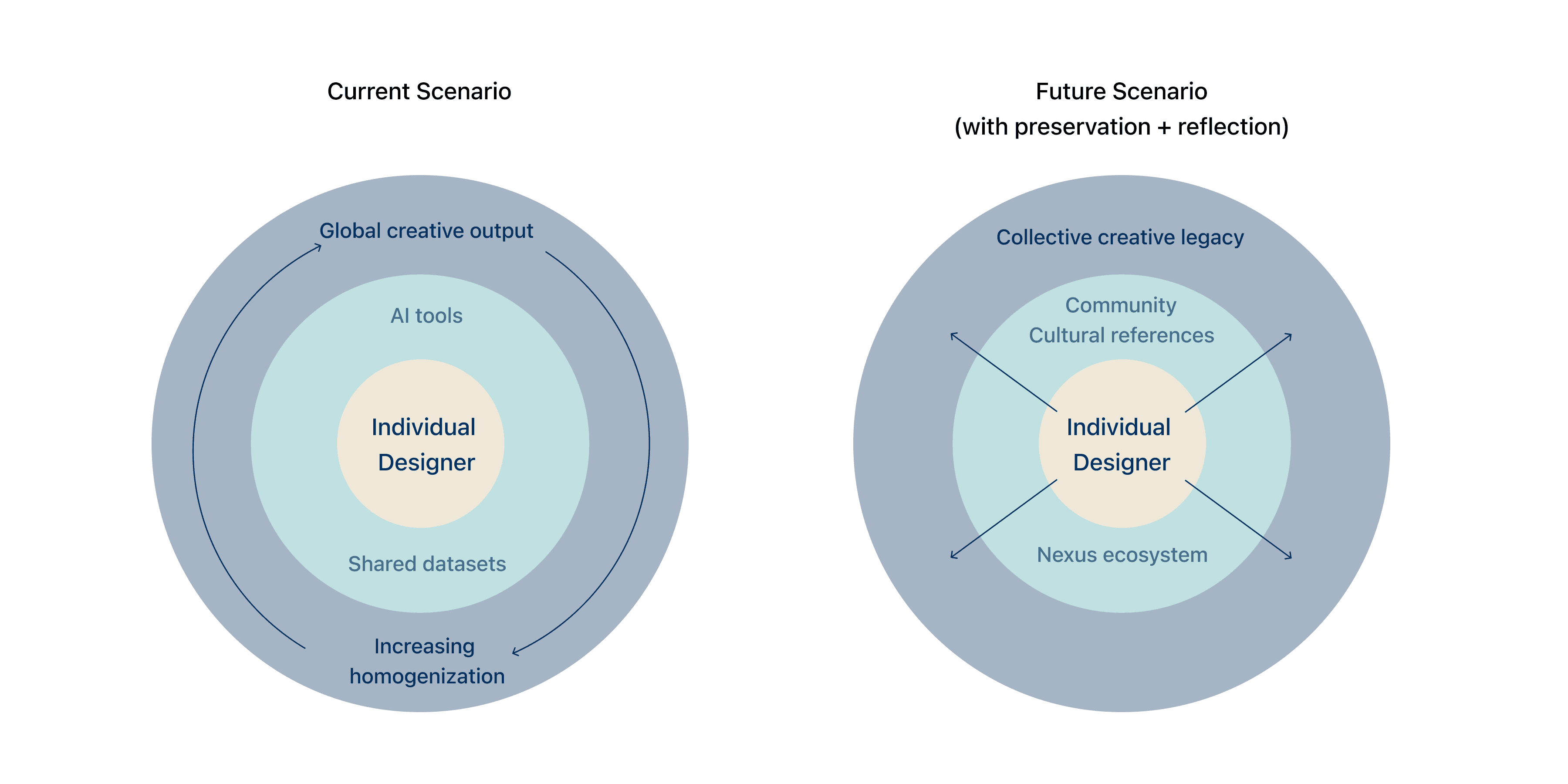 Over the next decades, as AI-powered systems continue to learn from creatives' content, this shift becomes all the more crucial. Nexus can help reshape how we leverage AI through preserving cultural context behind creatives' works — this helps preserve perspective, values and human authenticity which future technology can learn from.
